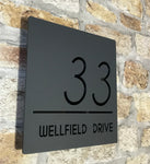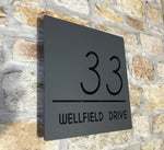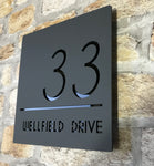 This house sign has a floating effect as it is attached via hidden stand-off mounts. All materials are UV stable and weather resistant making this contemporary house sign one of the toughest on the market.