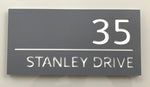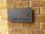 This house sign has a floating effect as it is attached via hidden stand-off mounts. All materials are UV stable and weather resistant making this contemporary house sign one of the toughest on the market.