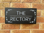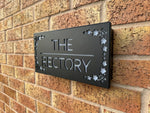 The package includes one personalised house sign, installation template, mounting hardware and instruction manual.