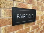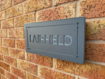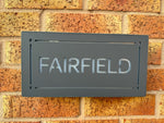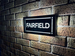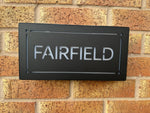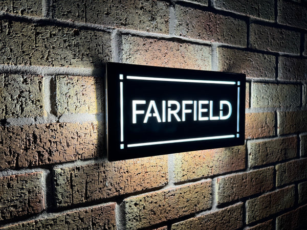 This house sign comes in a matt grey or matt black finish, with a personalised laser cut front panel. We can personalise the front panel with the required address, which then allows the light to pass through when illuminated. With the combination of backlighting and rear wall light projection this sign is very visible at night, making finding your home easy for visiting guests, Delivery’s or emergency services.
