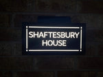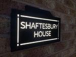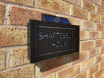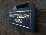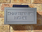 This contemporary house sign has a built-in solar panel that charges the rechargeable battery in just 4-6 hours. During the day the solar panel converts sunlight into stored electricity. This will then automatically illuminate for around 8-10hours once night falls. Making this sign very visible at night making finding your home easy for visiting guest, Delivery’s or even the emergency services.