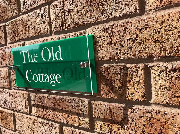 Personalised House Sign. Reverse engraved front plate with a choice of colour backing plates. Colours available are Gloss Blue, Red, Green or Black. This house sign is mounted with stainless steel stand-off mounts to resist the toughest of conditions. All materials are UV stable and weather resistant making this personalised house sign one of the toughest on the market. All of our house signs come with fixings and fitting instructions provided. Size 30x12cm Dispatched within 1-3 working days.