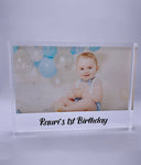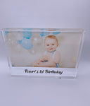 Freestanding My 1st photo block. Our acrylic photo blocks make the perfect gift or addition to your own home. All our photo blocks are made using free standing 2cm thick acrylic. Our 1st photo blocks can be personalised with your preferred landscape or portrait layout, a photograph of your captured first moments being a 1st Birthday, 1st steps or a 1st holiday, making the perfect gift for any family. We use the latest UV printing technology, as opposed to less durable methods, ensuring we provide a long lasting personalised gift that can be cherished forever. After placing your order please email your chosen photograph to info@oneofakinddesignuk.co.uk, with your order number and surname in the subject field. Please Note: Photographs will be printed as sent, so please ensure they are of high quality and not too dark. We may need to crop some photographs to fit into the space however any editing, brightening or lightening will need to be done by yourself prior to sending to us. Available in 2 sizes: 10cm x 15cm & 20cm x 15cm Dispatched within 3 to 5 Working Days.