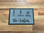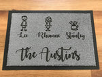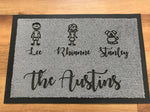 Personalised your doormat with your family name and your own individual Stick person character for each member of the family.