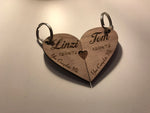Interlocking keyring set is the romantic gift for two that's sweet but not too soppy. Made from strong and durable walnut or oak wood, this set of two interlocking keyrings fit perfectly together.