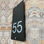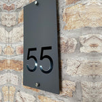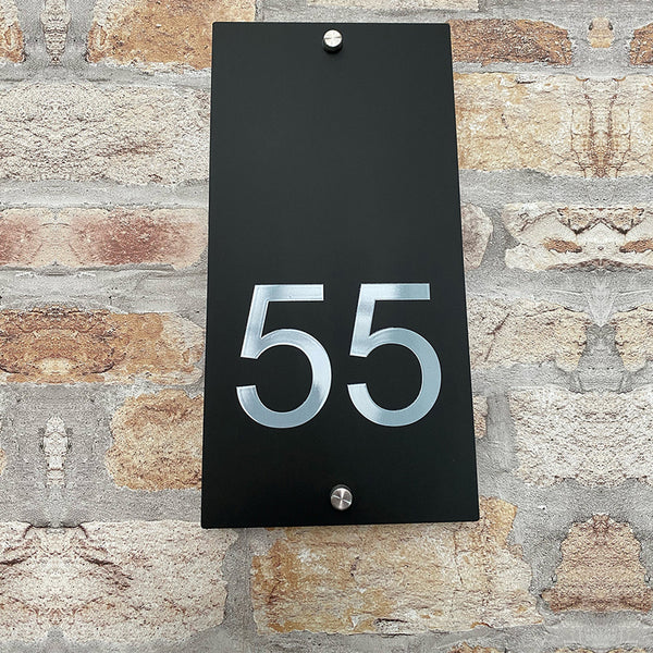 The house number has a floating effect as it is attached via four stainless steel mounts. All materials are UV stable and weather resistant making this contemporary house sign one of the toughest on the market. Size 150x300mm. All of our house signs come with fixings and fitting instructions provided.