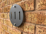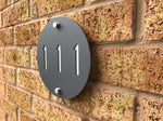 This Contemporary House Number is made from a matt grey or matt black front with a choice of backing colours which are mirrored silver, gloss white, gloss green, gloss red and gloss blue.