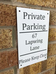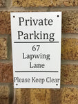 Make your parking space your own with this personalised no parking sign.
