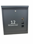 - Personalised address parcel box – customise with house number, street name, or full address with a choice of colour text