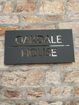 All materials are UV stable and weather resistant making this contemporary house plaque one of the toughest on the market. Size 300x150mm. All of our house signs come with fixings and fitting instructions provided.