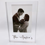 Freestanding family acrylic photo block.