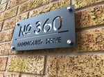 A contemporary house sign that will put the finishing touch to the front of your home. This house sign is made from a 3mm matt grey acrylic with an contrasting coloured backing.