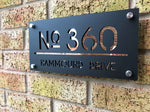 This house sign is attached via stainless steel stand-off mounts. All materials are UV stable and weather resistant making this contemporary house sign one of the toughest on the market.