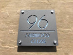 A contemporary house sign that will put the finishing touch to the front of your home. This sign is made from a 3mm matt grey acrylic with an contrasting coloured backing. There are three choices of backing colours which are mirrored silver, gold or gloss white. The house sign has a floating effect as it is attached via stainless steel stand-off mounts. All materials are UV stable and weather resistant making this contemporary house sign one of the toughest on the market. Size 180x180mm. All of our house signs come with fixings and fitting instructions provided. Dispatched within 3-5 working days.